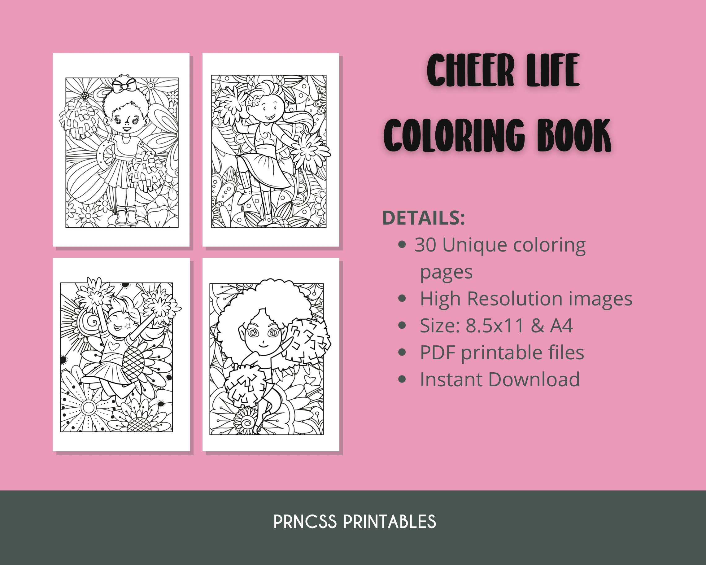 Cheerleader Coloring Cheer Coloring Books Printable Coloring Etsy Canada